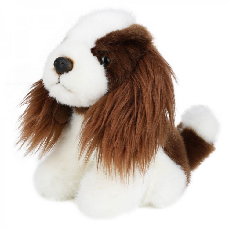 • A charming miniature Springer Spaniel soft toy with classic brown and white markings, long floppy ears, and a sweet, expressive face captures the playful spirit of the beloved breed.